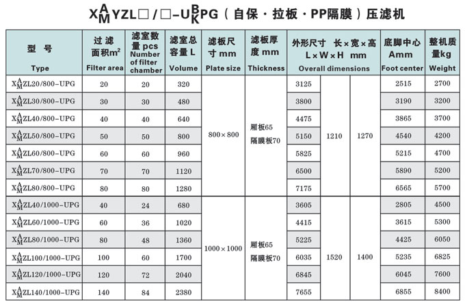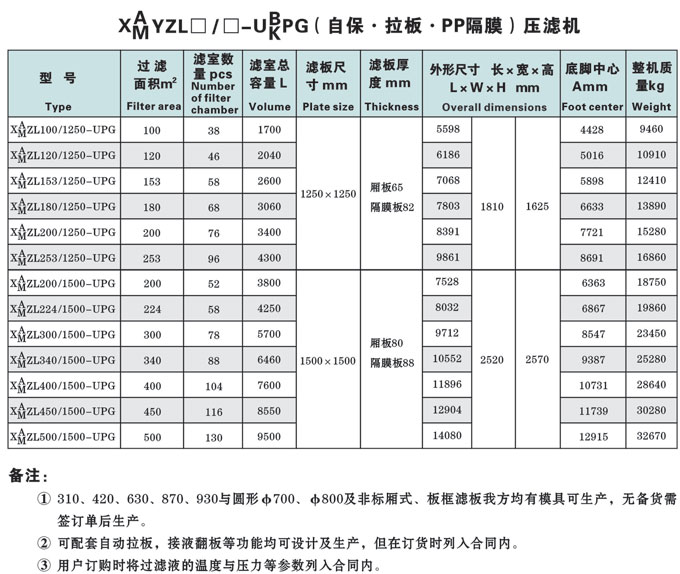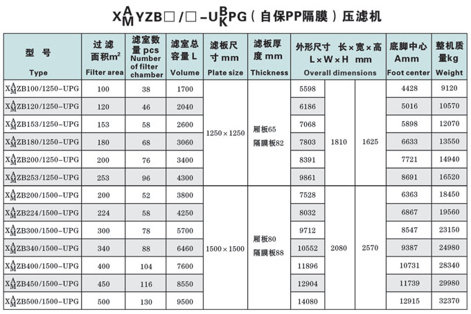 技術參數: 由于同一型號壓濾機配置有很多種,圖表中的技術參數只能作為參考,所以具體參數需要根據客戶的實際需求,以恒達公司技術部提供的數據或圖紙為準。